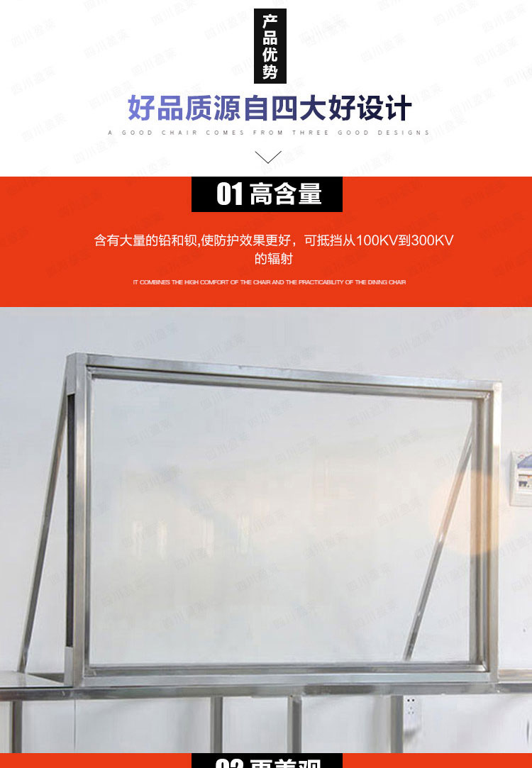 铅玻璃观察窗主要适用于X光机、DR、CT、DSA、加速器、PET-CT、中子刀、伽玛刀、后装机、钴60、ECT等机房与操作间之间工作用。